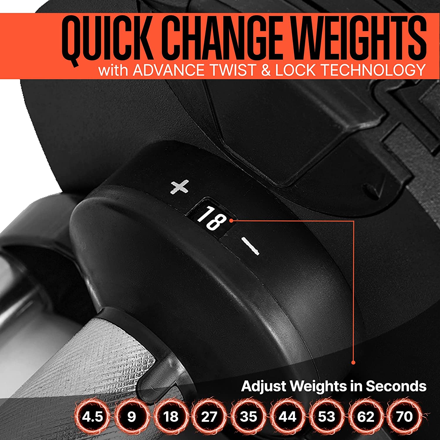 - Adjust weights from 4.5, 9, 18, 27, 35, 44, 53, 62, and 70 lbs pounds. Makes switching weights easy. get a full gym experience with premium quality equipment.