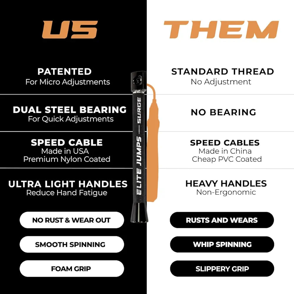 Surge 3.0: Self adjusting aluminum speed jump rope for double under cross training. Fast & smooth dual ball bearings.